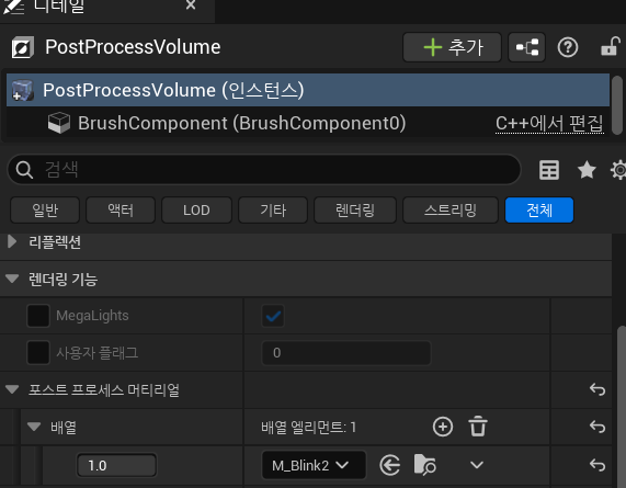 머티리얼을 생성해 Post Process로 변경했습니다.