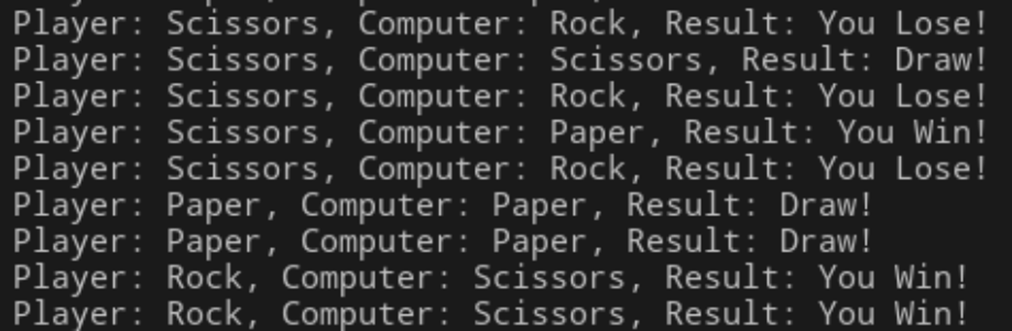 - 플레이어의 승/무/패 결과를 출력한다.