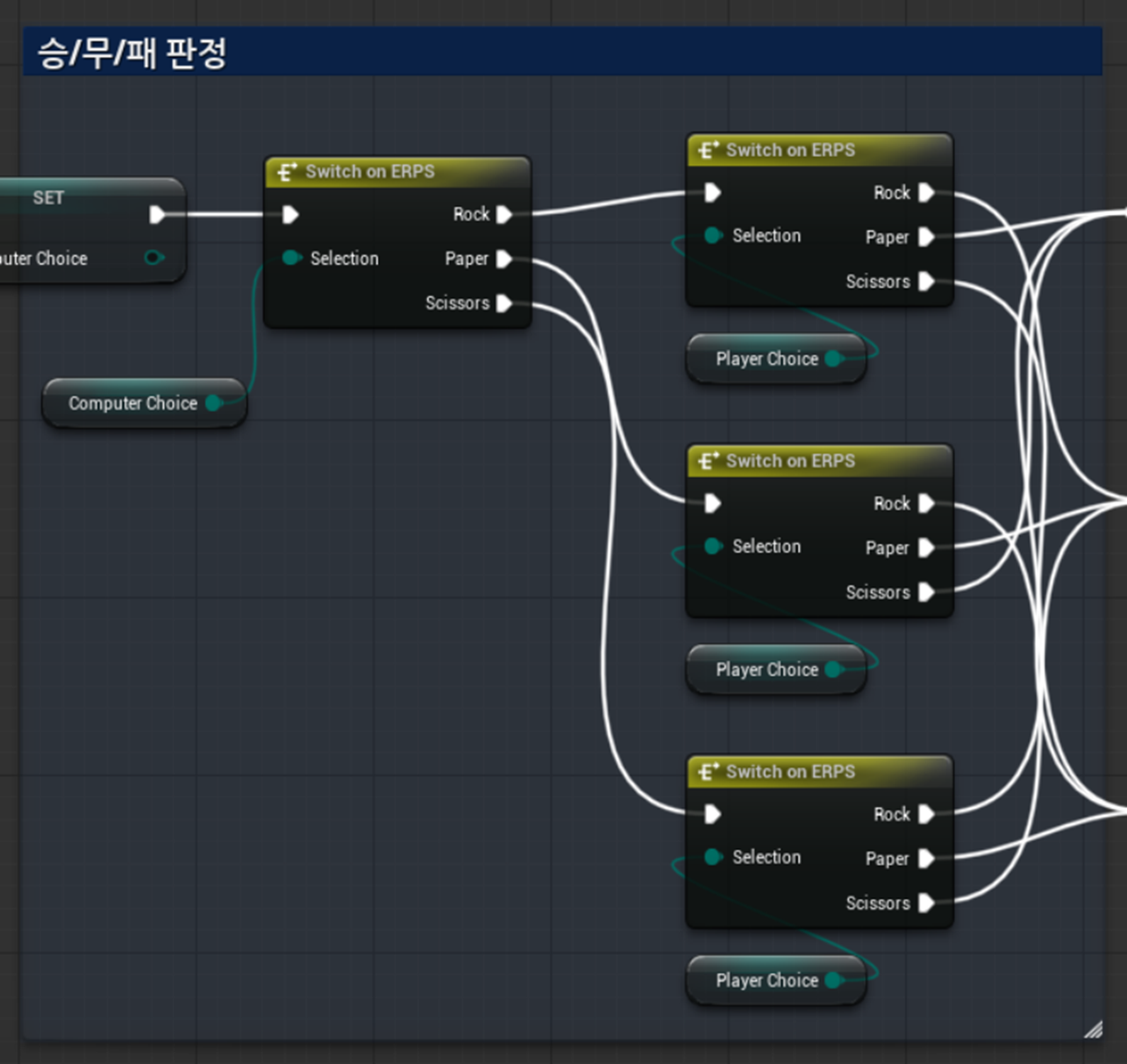 승/무/패 판정은 Switch on Enum을 활용해 조건을 검사합니다.