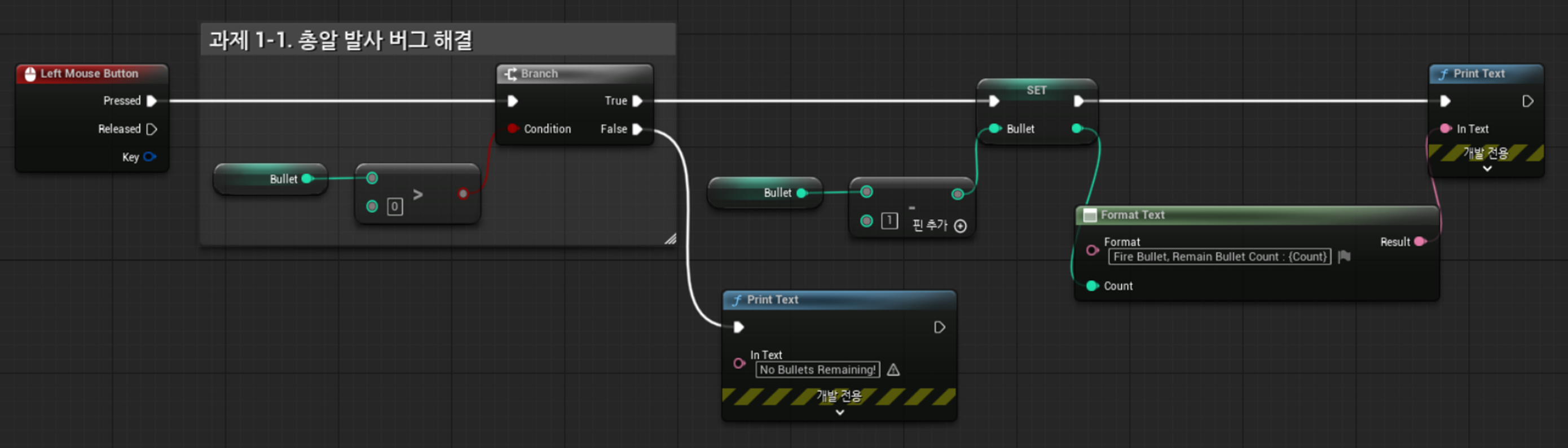 1) 총알 발사 버그 - 30발 이상 총알을 발사하려고 하는 경우, 발사가 불가능하도록