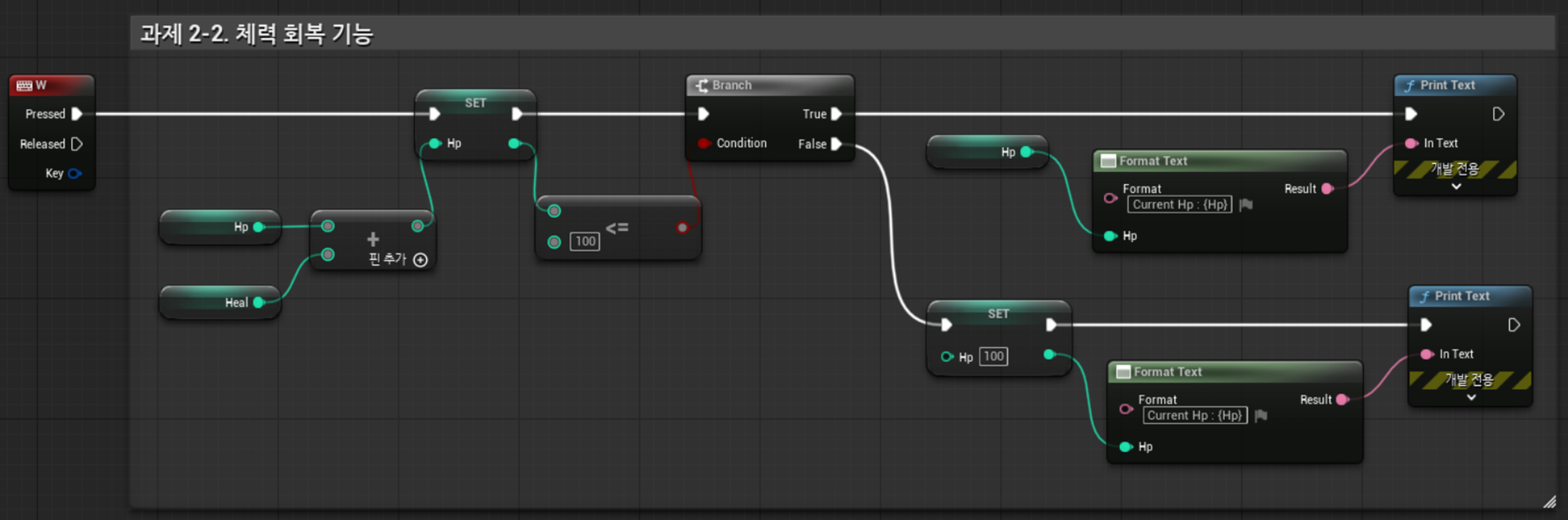 2) 체력 회복 기능 - HEAL이라는 노드를 생성해 총알 피격으로 입은 피해를 치료하는 기능 추가