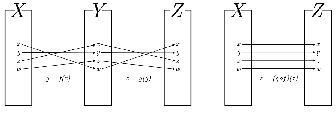 함수의 합성(Function Composition) : 2개의 함수를 연쇄적으로 이어서 하나의 함수로 만드는 연산. g∘f 또는 g(f(x))