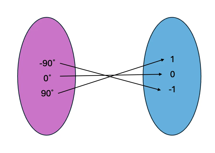 sin 함수가 가진 x와 y 사이의 대응 관계를 살펴보면 정의역의 여러 요소가 공역의 한 요소에 대응되는 것을 알 수 있습니다.