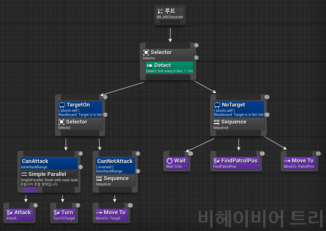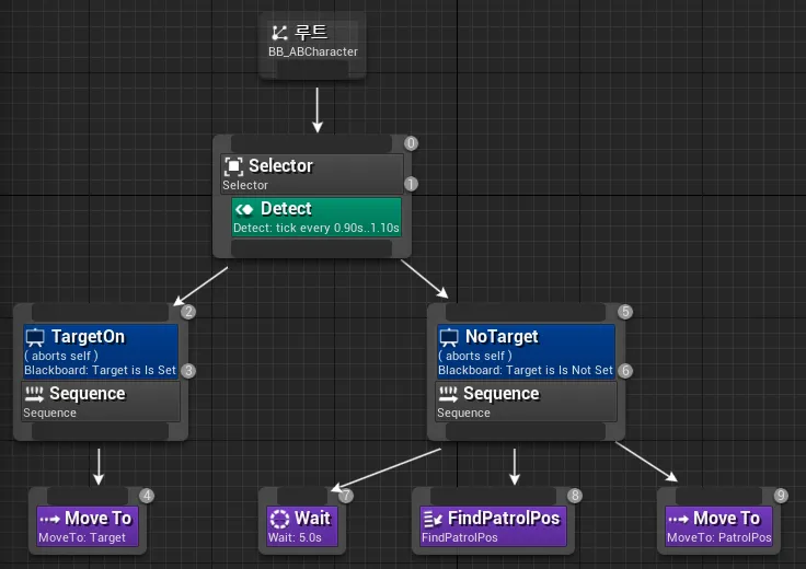 - 블랙보드 키값 설정(추격->Is Set, 정찰->Is Not Set)