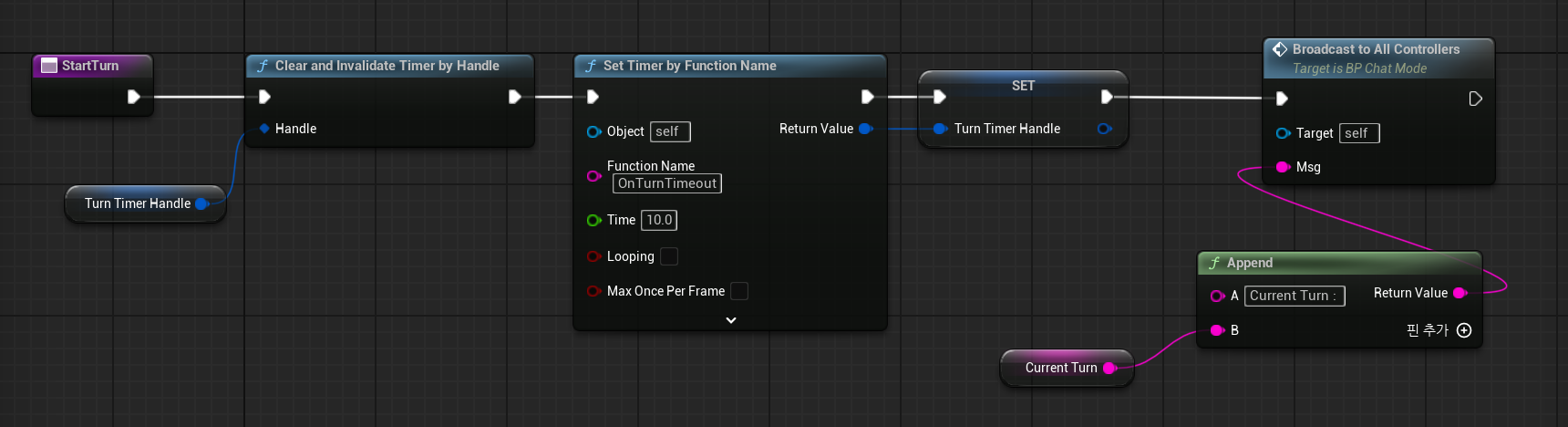 턴이 시작되면, 기존 타이머를 정리하고, 새 타이머를 설정한 뒤, 모든 플레이어에게 현재 턴 정보를 알려줍니다.