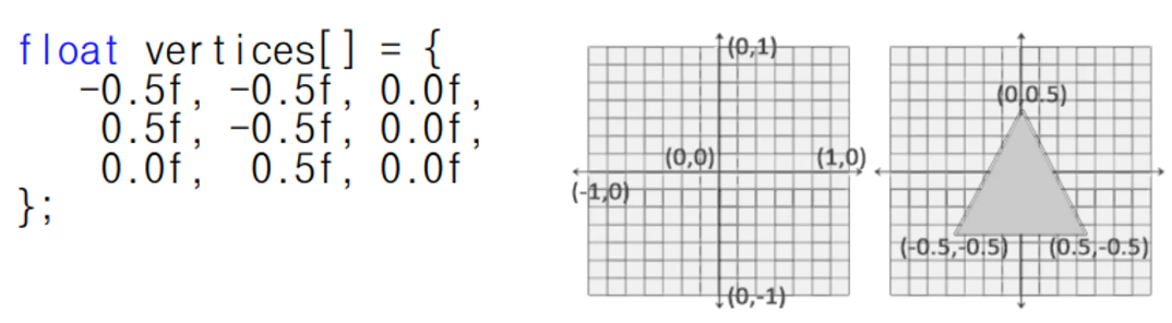 OpenGL은 각 축(axis)에서 -1.0과 1.0 사이 값으로 표현된 정점 데이터만을 처리