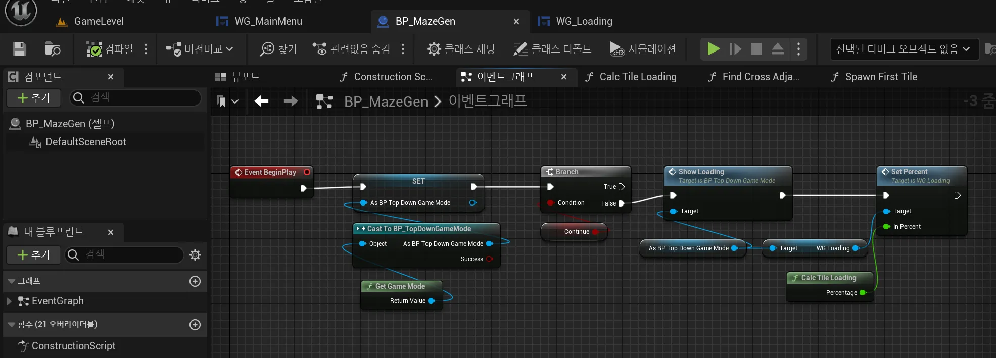 Maze Generation에서 continue가 false이면 로딩바 화면이 보이는 함수 호출