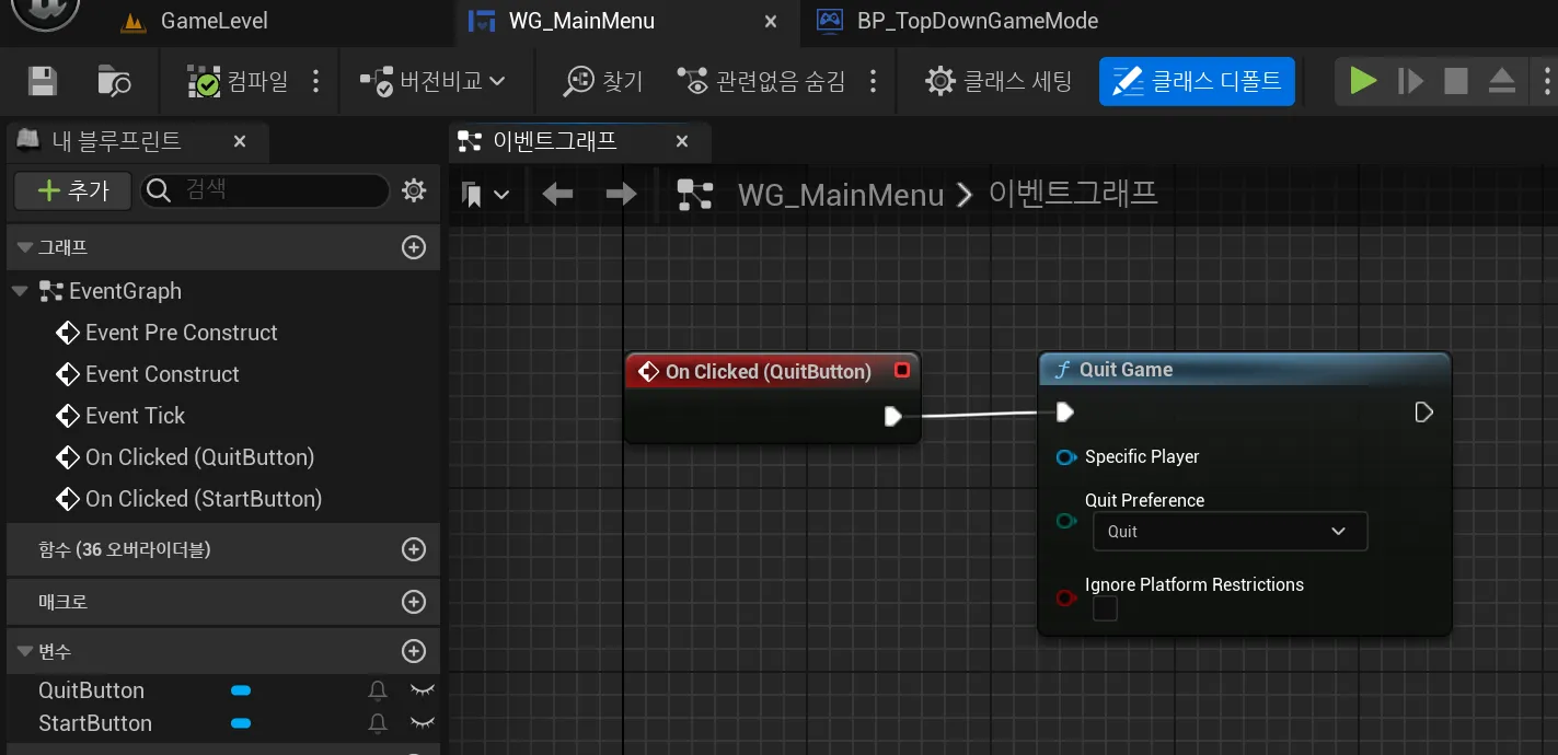 게임모드에 위에서 생성한 위젯 뜨도록 구현